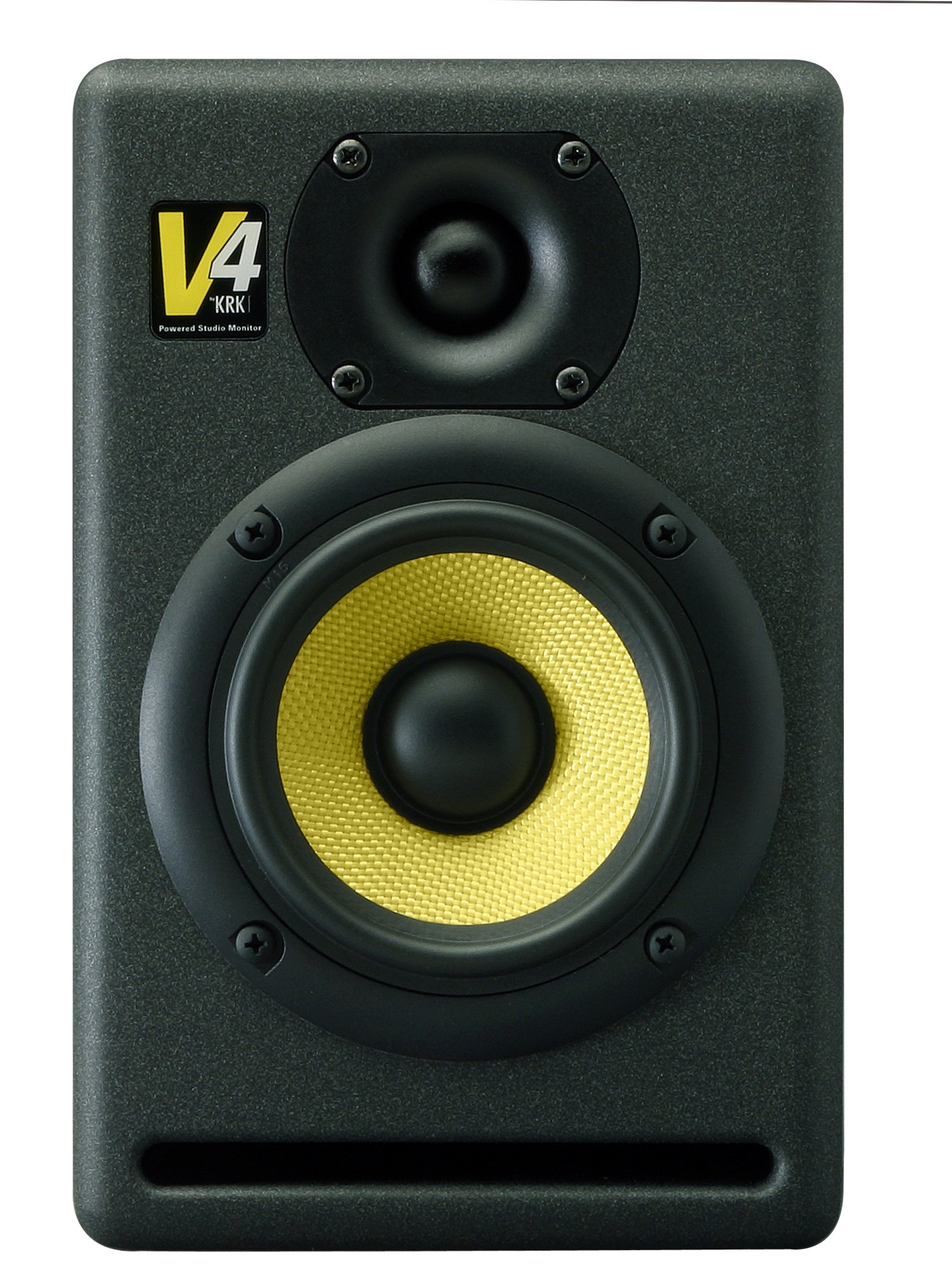 There's big sound coming out of the V4 mini monitor. In KRK fashion, the V4 has separate amplifiers for both woofer and tweeter, which make it extremely clean and virtually eliminating any distortion. Video shielding is standard, making it an optimum choice for small audio workstations. A Neutrik Combo connector gives it ultimate flexibility for both balanced and unbalanced signals, it also gives you the option of using 3 different connectors (XLR, 1/4 in. TRS, or 1/4 in. Instrument). Paired with the S8 subwoofer, it just goes to show that good things do come in small packages!